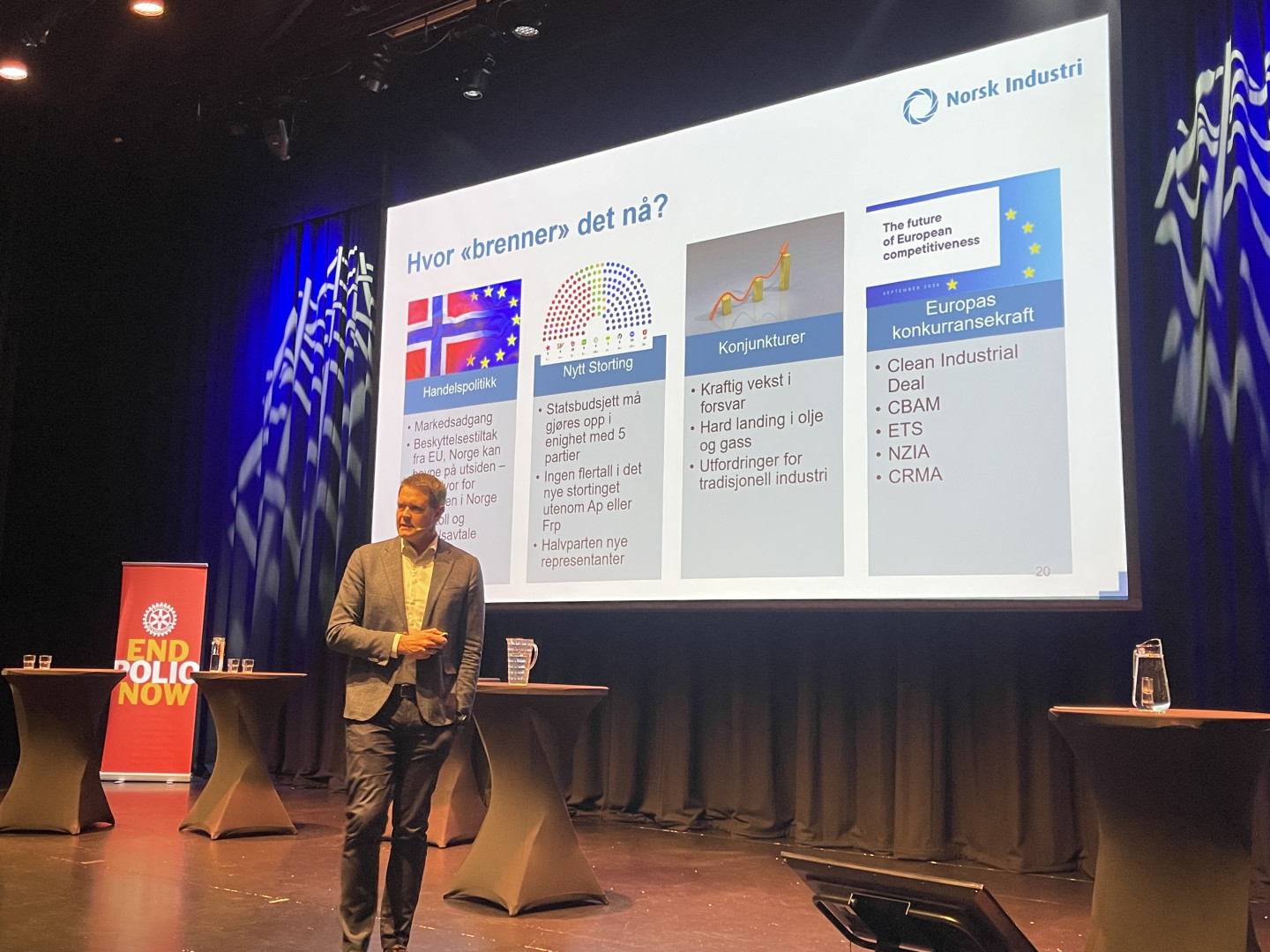 Hvordan bør norsk industri møte utfordringer og muligheter i en urolig og uforutsigbar verden? Hva betyr resultatet av stortingsvalget for næringslivet i vår region?