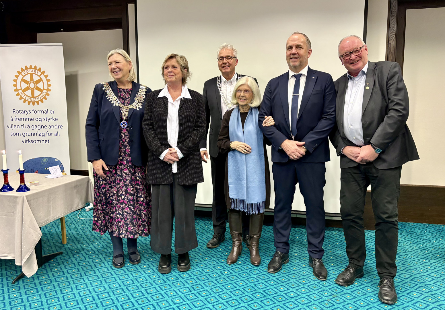 Nye medlemmer med fadderne. Fra venstre guvernør Astrid Danielsen, Gro Bjørge, president Jan Carsten Gjerløw, Kirsten Wang Henriksen, Gisle Baugerød og Anders Rasmussen.