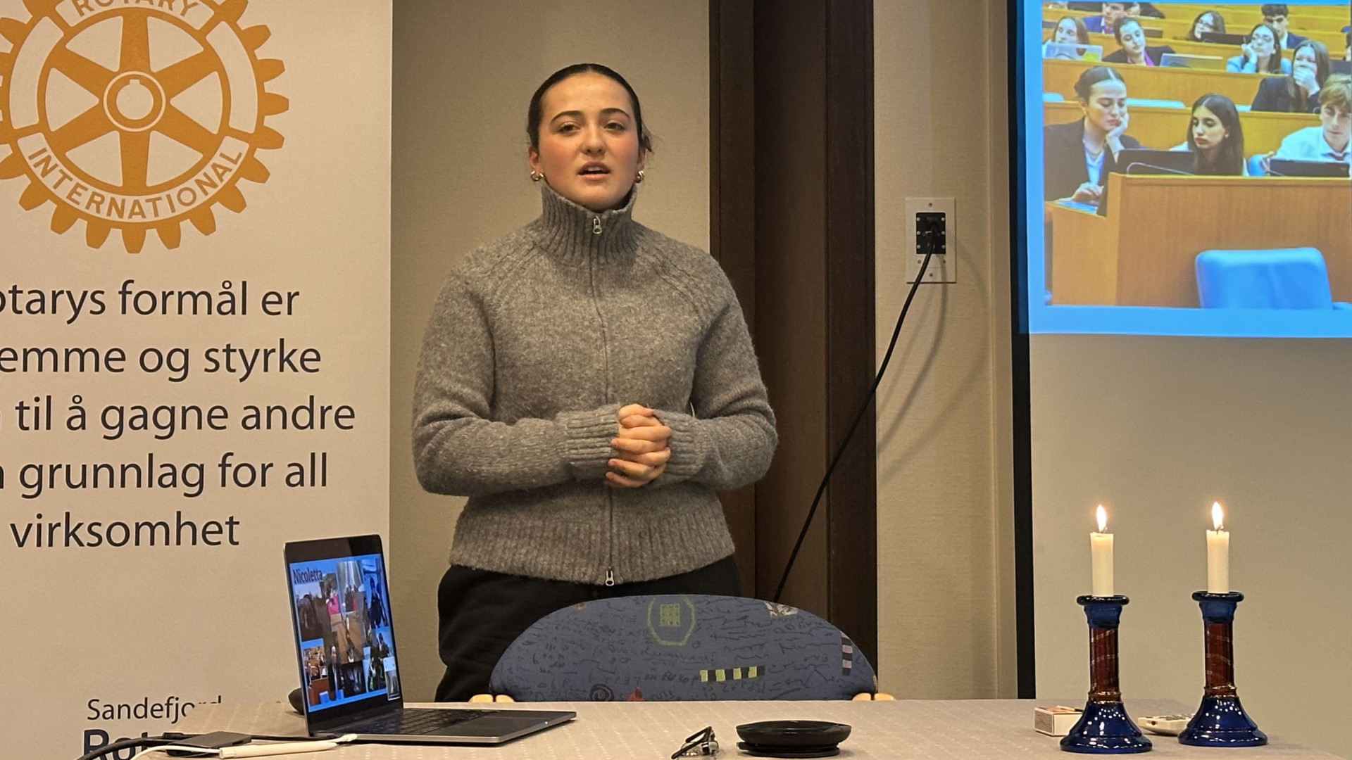 Det var to fornøyde utvekslingsstudenter vi møtte på dagens klubbmøte. Nicoletta Fenoglio har tatt turen fra Torino til Sandefjord, mens Gabriella Barbru har reist motsatt vei, nærmere bestemt til Caltanissetta på Sicilia. Begge er strålende fornøyde med det de har opplevd.